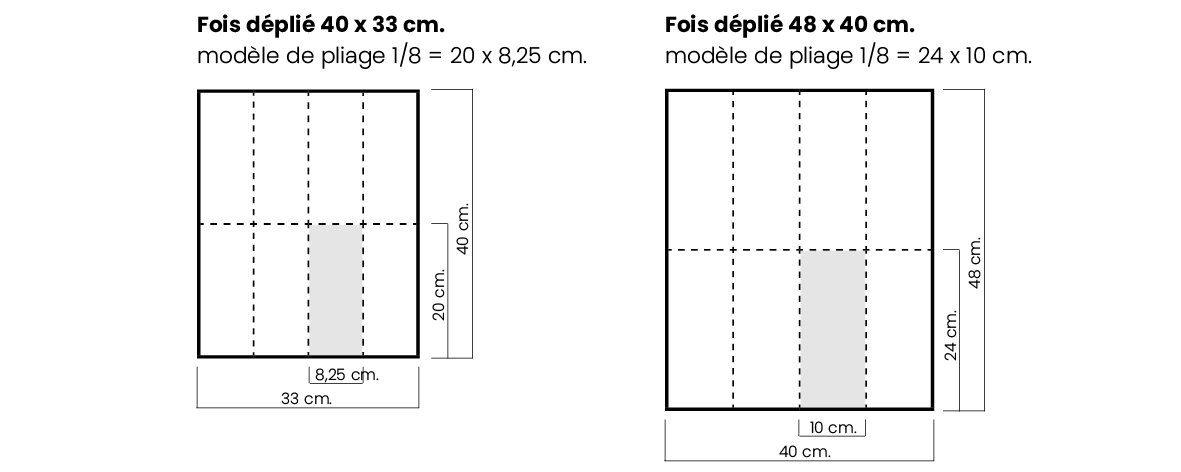 Idéal comme serviette pour le déjeuner ou le dîner pour les restaurants et les cafés. Vous pouvez choisir entre un modèle de pliage de livre ¼ et un modèle de pliage de livre 1/8.